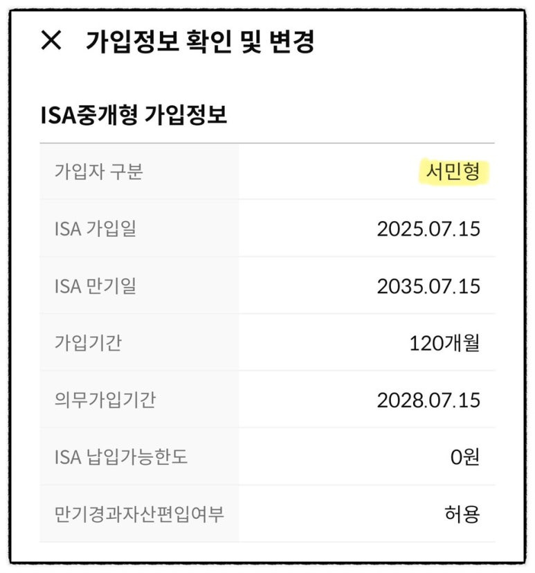 한국투자증권에서 ISA 계좌를 개설하니, 기본적으로 일반형으로 만들어 졌다.