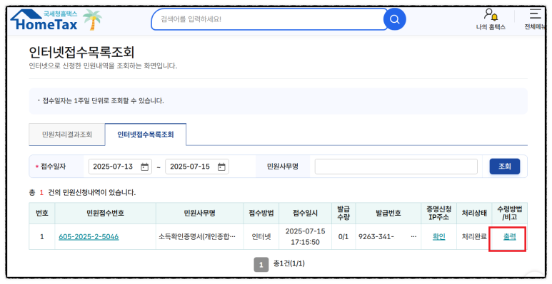 필요한건 발급번호이니 프린터출력이나 화면조회를 하면 된다.